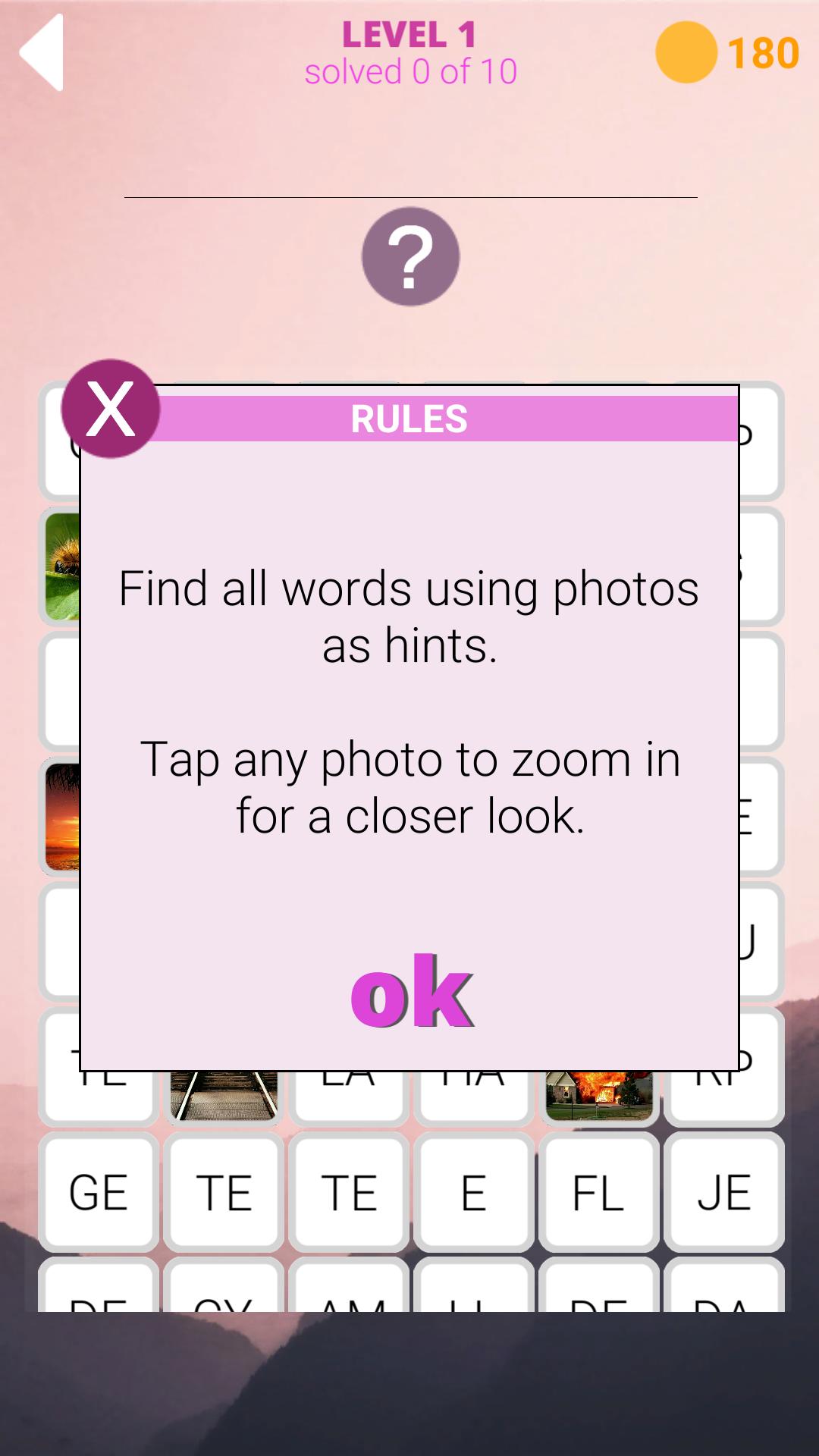 The game process is divided into two types, each level consists of twenty words, the lessons of the game are divided into photos and the answers to them that are broken into syllables, your task is to look at the photo to guess and compose a word from syllables, when you click on any photo the picture can be increased. This wonderful game was created to play in the company of friends, family and friends. Play at your choice in: English, French, German, Russian, Italian and Portuguese.