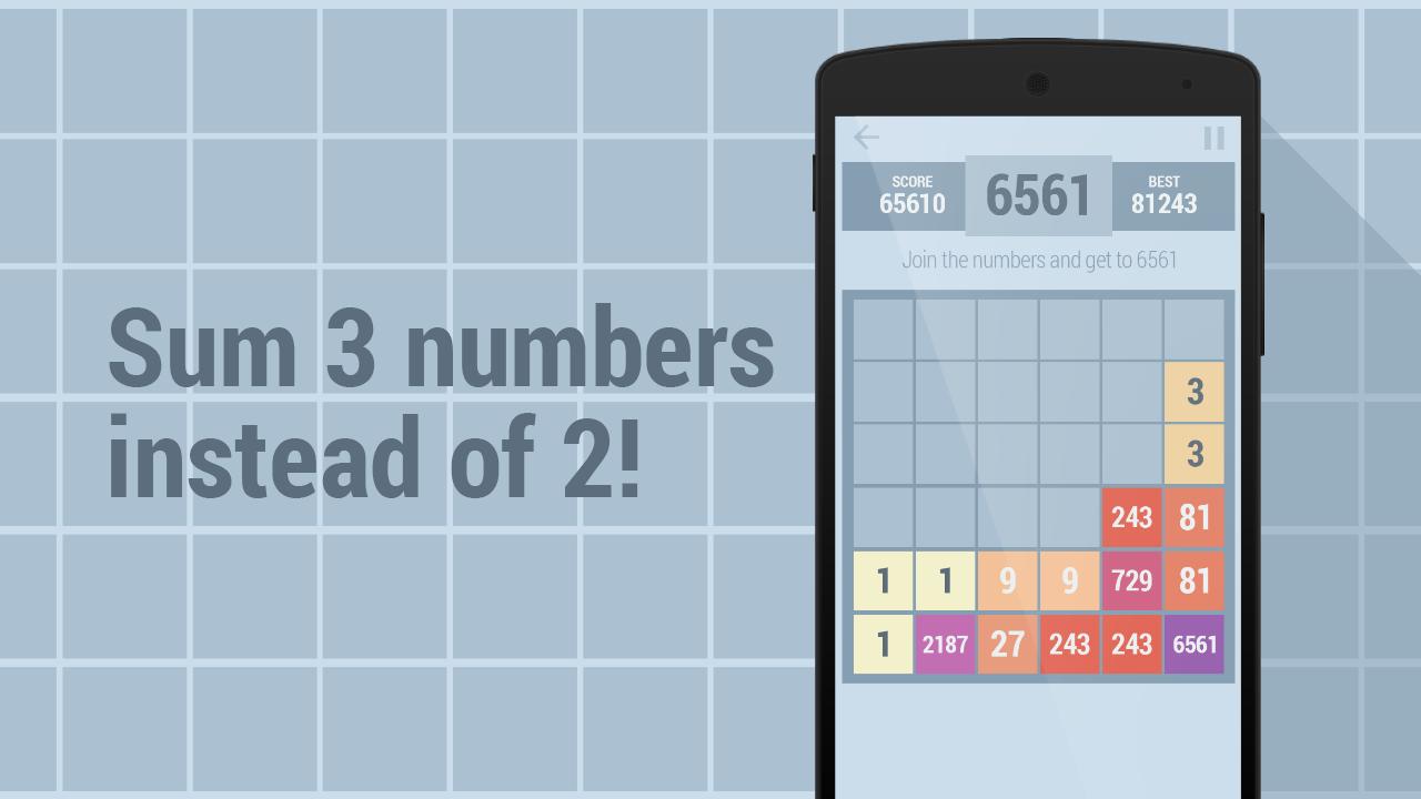 6561 Next Level 2048 is a legendary mind puzzle, based on logic of classical game 2048, but in Next Level: 6561 you have to sum not 2 numbers but 3! For those, who never played in original puzzle 2048, the logic of this game reminds classic 15-Puzzle or Gomoku. 6561 Next Level 2048 has field with 6x6 cells where you have to move and merge 3 numbers to get the cell with the number of 6561. 2048 Next Level is a great brain trainer which will help you to rest usefully for mind! Start 2048 Next Level: 6561 and train your smartness! Share the results with friends in social networks and challenge them! Find out who’s smarter! Whose logic works faster? Who counts like a god? Prove everyone that it’s you and play 2048 Next Level: 6561!