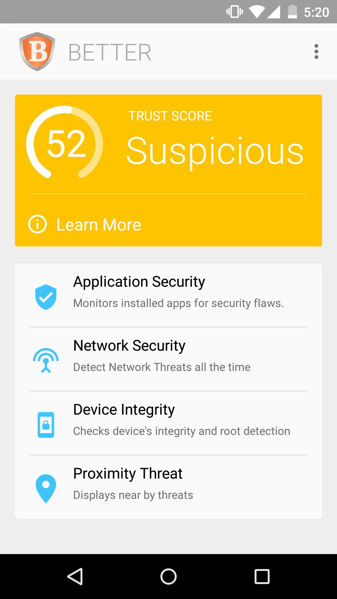 BETTER provides Android users with comprehensive real-time threat detection, providing the user with the information to keep their devices safe from attacks form anyone and anywhere.