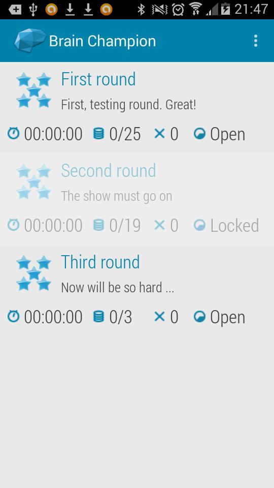 بطل الدماغ هي لعبة التوافه البسيطة التي ستختبر معرفتك حتى العظام. تتكون كل جولة من عدد من الأسئلة ، حيث تكون الإجابة دائمًا كلمة أو عبارة واحدة. تقوم اللعبة بتقييم إجمالي الوقت وعدد الإجابات غير الصحيحة لوضع نتيجتك في جدول نتائج بطل الدماغ. حظ سعيد!!!