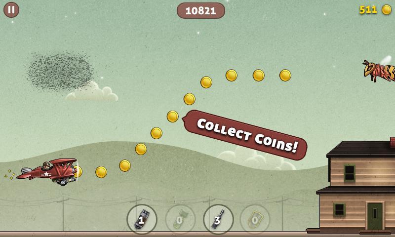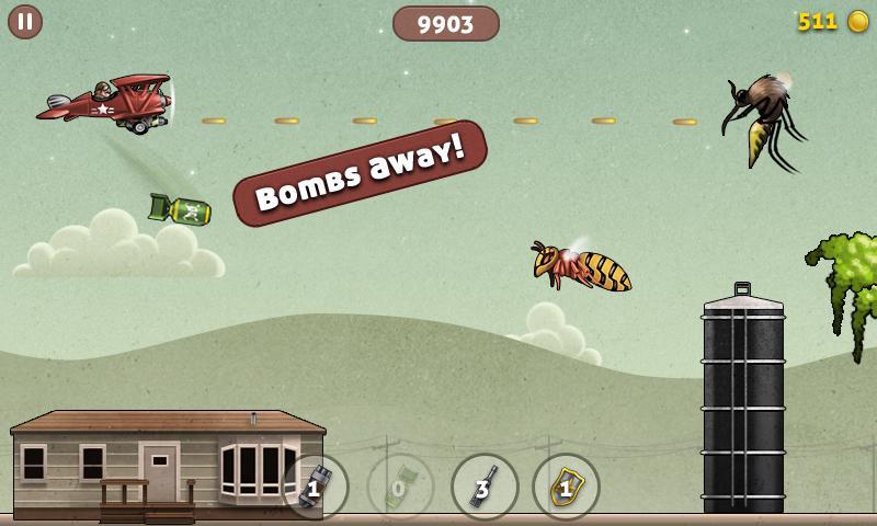 مناورة الطائرة الخاصة بك لجمع العملات المعدنية وتشغيل طائرتك مع البنادق ، و bugbombs ، وأبراج النار السريعة ، والأشجار التي لا تقهر.