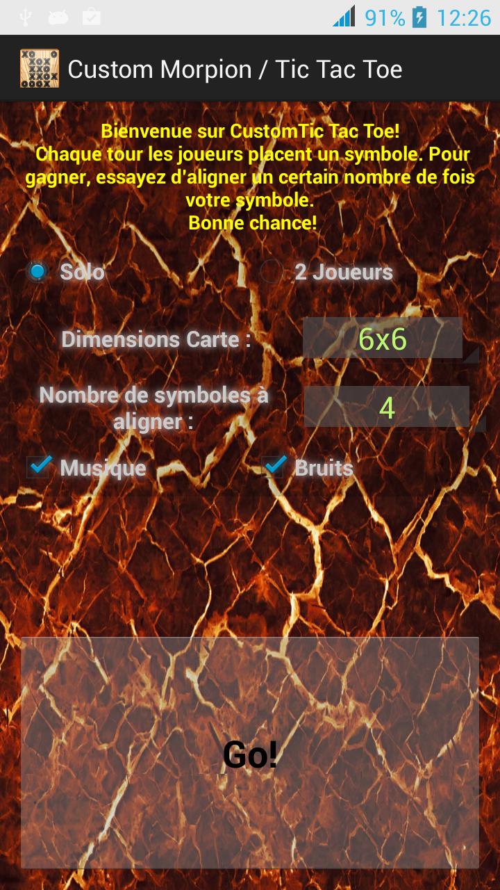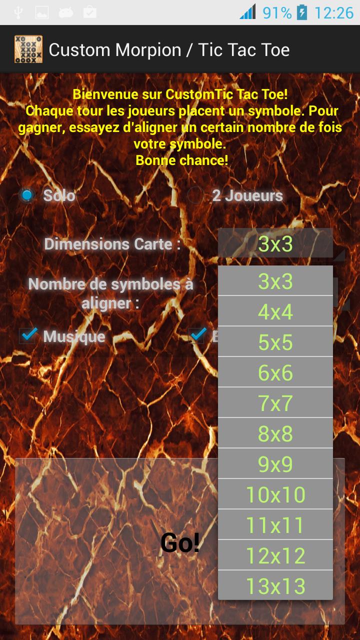 هذه اللعبة تبدو وكأنها morpion التقليدية إلا أنه يمكنك تخصيصها ؛ يمكنك اختيار: