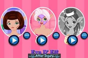 Eva D Elf بعد مكياج الإصابة والوجه هي لعبة مليئة بالفتيات مثلك. إيفا ديلف هي فتاة صغيرة لطيفة تؤذي ذقنها أثناء اللعب مع صديقاتها. عادت إلى المنزل وهي تبكي بالدم يخرج من الجرح. عليك أن تمرضها وإعادة الابتسامة على وجهها مرة أخرى. يمكنك أيضا مساعدتها