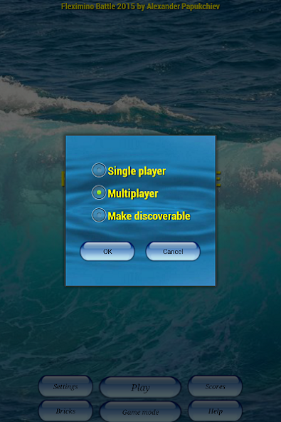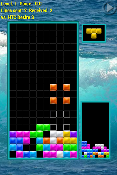 - لعبة متعددة اللاعبين - يمكنك اللعب ضد لاعبين آخرين من خلال اتصال Bluetooth. إن المقاصة كل سطرين سيؤدي إلى إرسال خط عقوبة إلى الخصم. قبل تشغيل لعبة متعددة اللاعبين يجب إقران كل من الجهاز (إعدادات الجهاز/الأجهزة البلوتوث/المقترنة).
