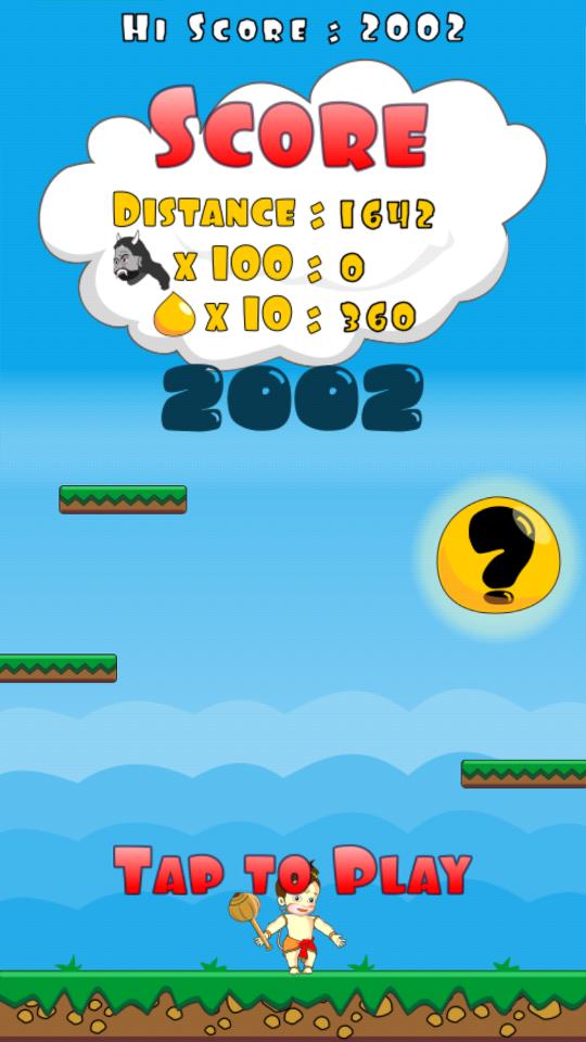 بال هانومان سعيد ويمكنه القفز فوق الخطوات ويطير عالياً لإنقاذ العالم. يشغل العالم بعض راكشاسا (الشياطين) وعلى طريق رحلته المغامرة يدمر هانومان راكشاسا (شياطين) ويحمينا منها. قم بميل هاتفك إلى اليسار قليلاً أو يمينًا لصنع أرض هانومان في كل خطوة حتى يقفز إلى الخطوة التالية. قدم المزيد من Laddus والموز وجوز الهند والصلوات في رحلته للحصول على درجة أعلى. اجعل الهانومان يطير عالياً قدر الإمكان.