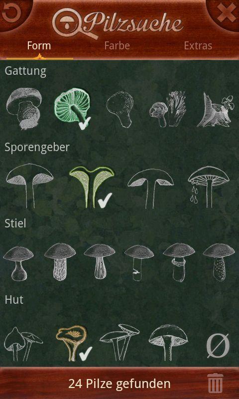 - viele Filter zur Pilzform, Pilzfarbe und weiteren Pilzeigenschaften