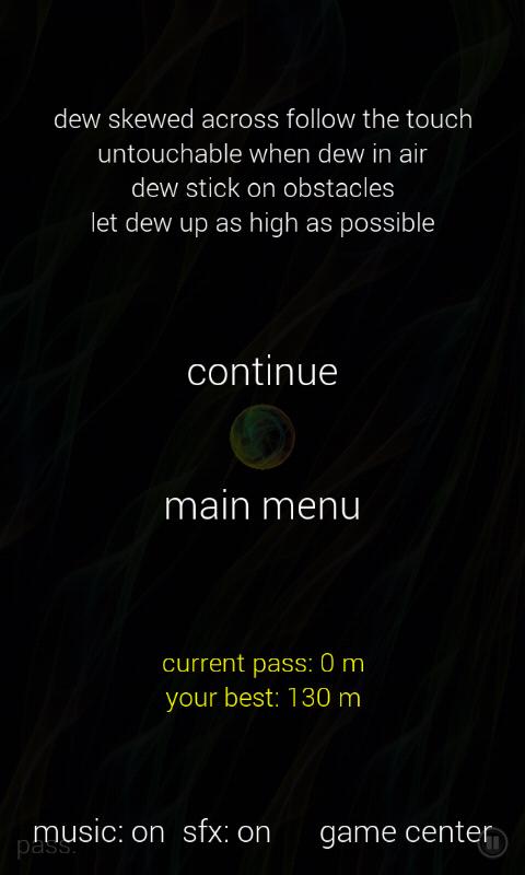 قواعد اللعبة بسيطة ، فقط يلمس على الشاشة إلى التنقل وسحب الندى لأعلى قدر الإمكان.