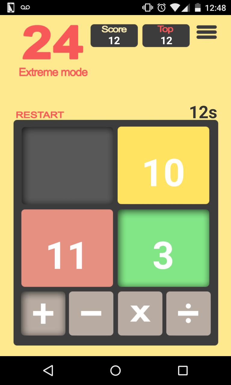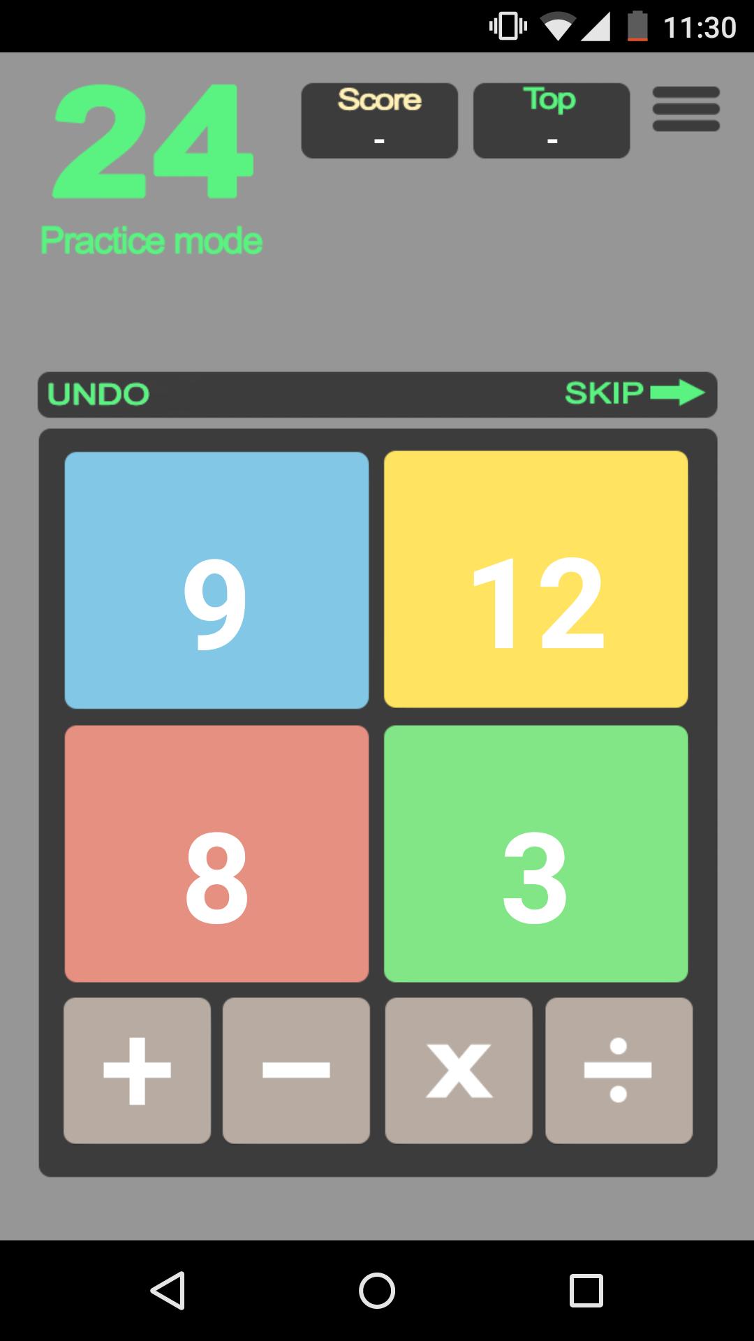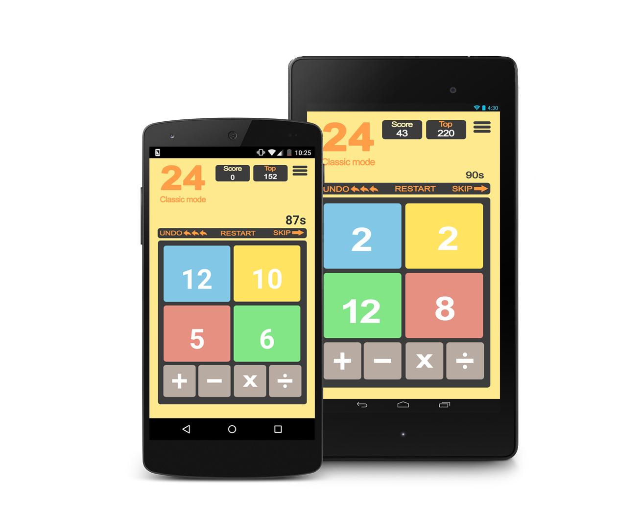 Two Dozen هي لعبة ألغاز الرياضيات ممتعة للغاية. الهدف من اللعبة هو الحصول على 24 باستخدام جميع الأرقام الأربعة المقدمة لك باستخدام أي من المشغلين (+ - x /).