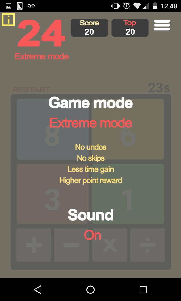 بالنسبة للأشخاص الذين يعتقدون أن الوضع الكلاسيكي سهل للغاية ويحتاجون إلى تحد أكبر. تبدأ مع 25 ثانية ولا تحصل على التراجع ولا تتخطى. التحرير والسرد الخاص بك ولكن الزوجي أسرع (الحد الأقصى هو 10). في كل مرة تحصل فيها على 24 ، تبدأ مرة أخرى مع 25 ثانية مرة أخرى.