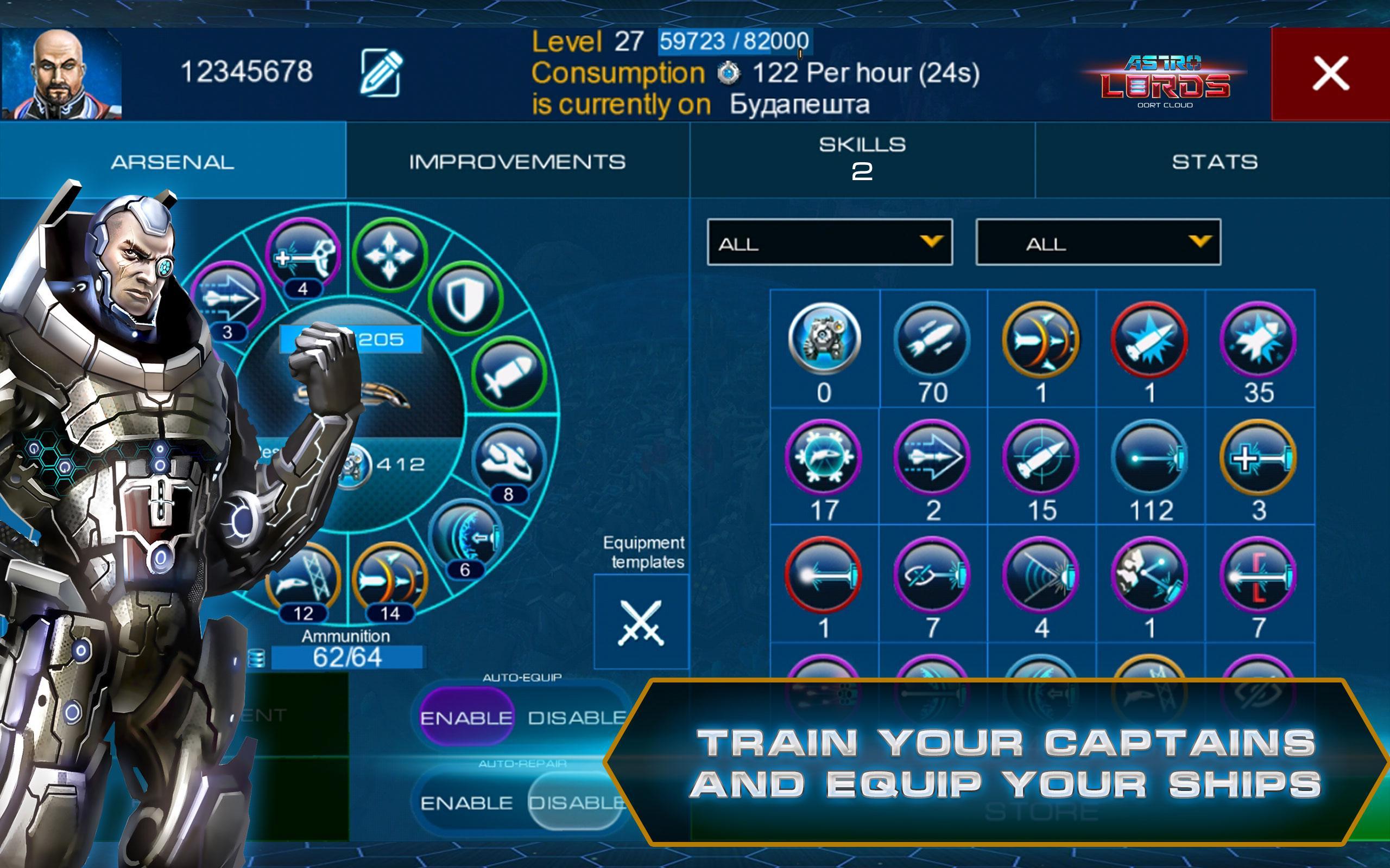 Leading the charge against your enemies are the Captains. You can recruit up to 6 Captains from 7 different classes. Will you recruit a Warrior and focus your efforts on combat? A Scientist, to boost your research output? A Spy, to keep tabs on other Astro Lords and alien bases? With over 50 different skills to develop, you can tailor your Captains to suit your gameplay style. Each Captain can be fully controlled in battle against other players and AI alien enemies, and will fight to defend your base while you're offline too.