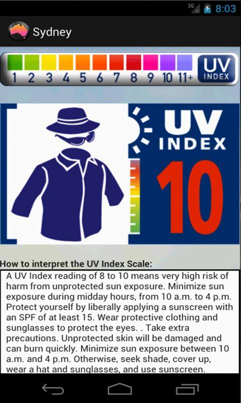 AustraliaUV provides you with an easy-to-interpret number and graphic as well as suggestions on how best to protect your skin. The app also provides an all-Australia UV forecast, skin cancer resources and a way to easily email the app developer. Current weather conditions can be accessed with just a tap.