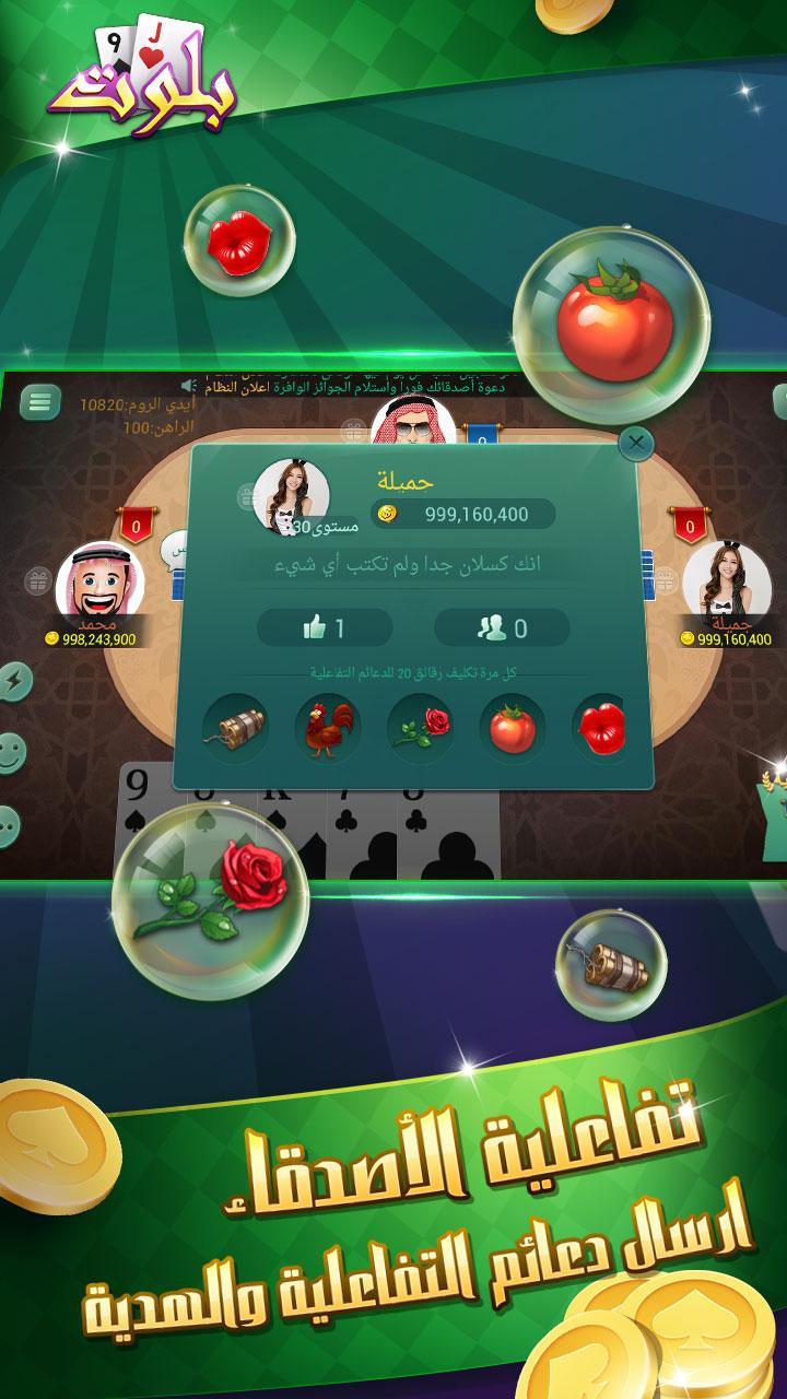 ♠ Friends Interactive - rich friends interactive module, gifts, chat, open room to play cards together. Let you in our feelings and life in baloot playing just as fun!