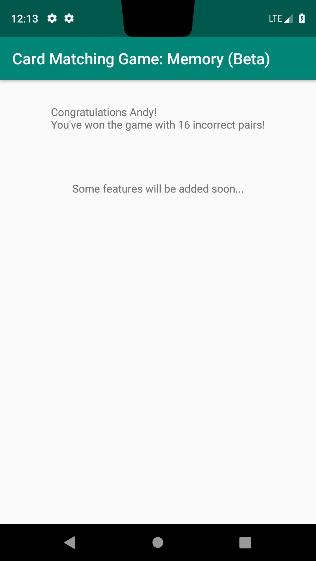 Card matching game is on Beta.