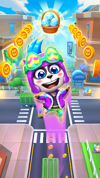 It is very easy to control, run as fast as you can, rush in the endless city scene. Be careful to avoid carrier, collect more and more coins and buy more props. There are many pet to choose, cat, unicorn and dog. Every pet runner have unique style. Take your liked pet to get the first runner.