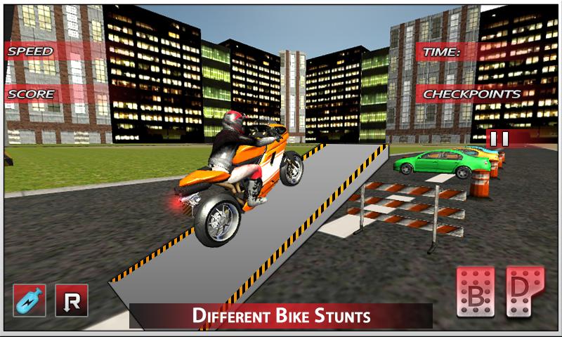 Experience the thrilling adventure now. 9 challenging levels will make you crazy and addicted, so are you ready to do insane Bike stunts? Be careful during unique jumping and parking modes and do all stunts with your crazy Bikes. Avoid all obstacles and get all Points by accurate parking by using your simulation skills.