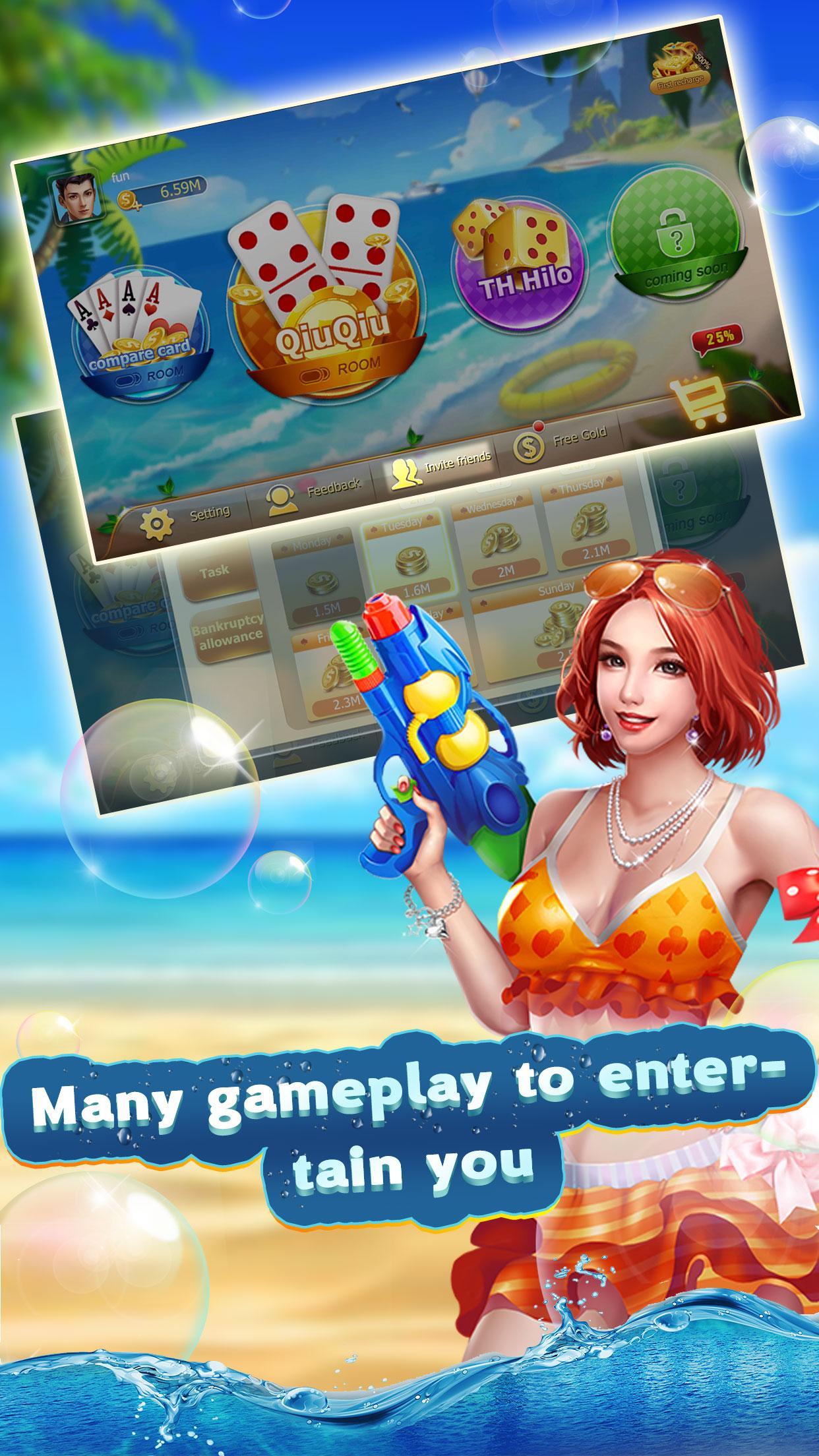 《Comparing Card》, also known as 《Adu Kartu》 is a popular poker card game in Southeast Asia. It’s easy to play, but also test your skill. Fun to play together with friends over and over again. Our《Comparing Card》is free to play, with lots of Coin BONUS for you, you can have a great time for free. Besides 《Comparing Card》, try also our local card games like Domino 99 / Domino Qiu Qiu, Domino Gaple, Sic Bo, Dice and so on. Invite your Facebook friends and play together for more fun and enjoyable experience. Just download it now!