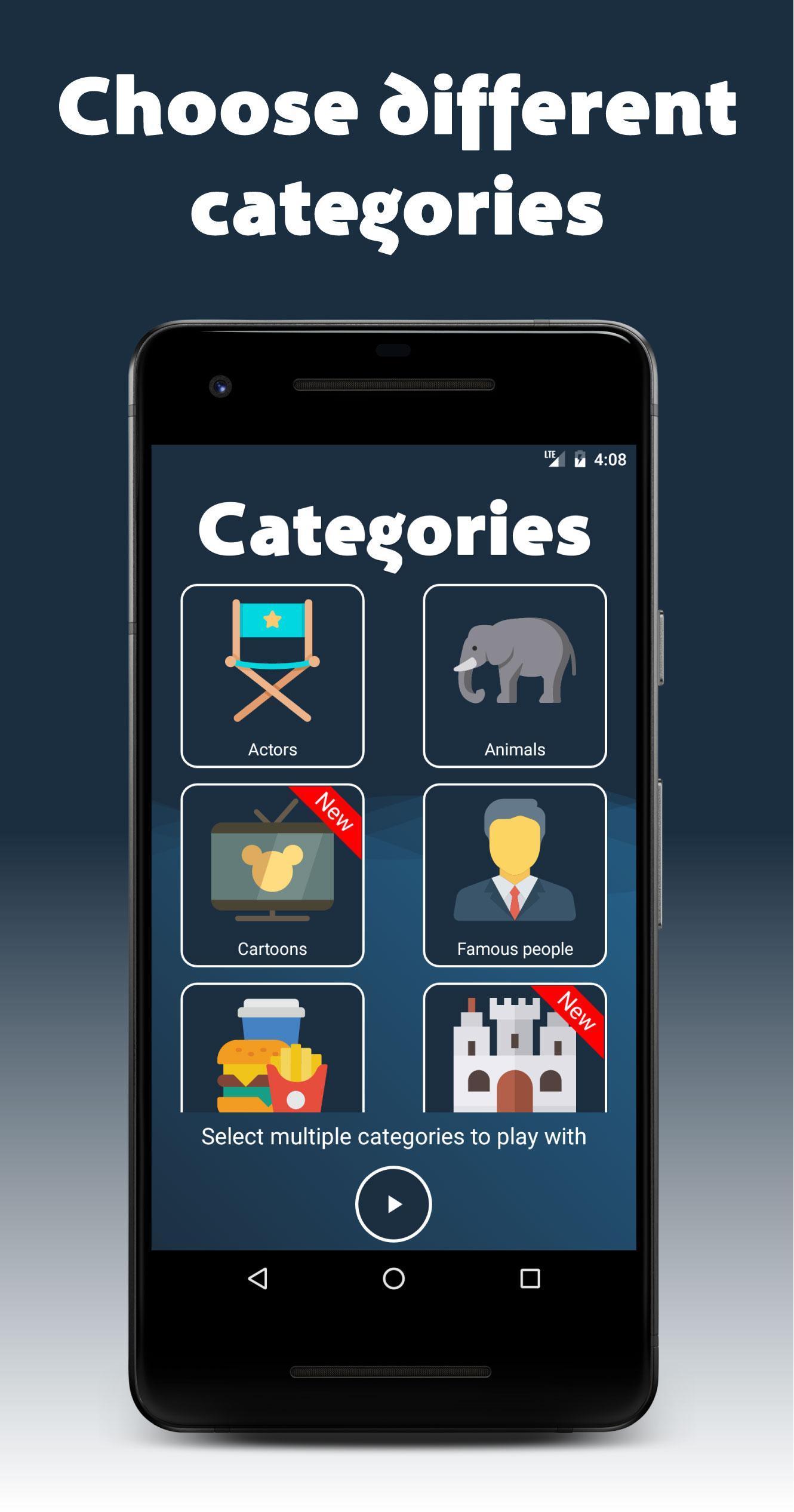 Play with friends or family and form two or more teams. Next, make a choice from the different English categories. It is the intention that for each team one of the players will describe or depicting the 5 words or names without actually saying the word.