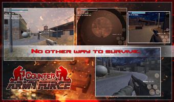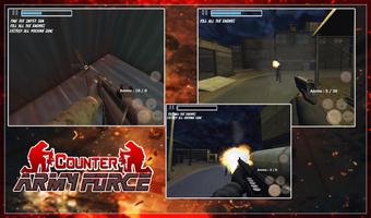 Counter Army Force team must eliminate the thread by shooting all the enemies, which is the terrorist team. You need to move fast and don't give your enemies time to shoot you because your life will drop and you will lose the battle when you die. Shooting more enemies means more chances to survive into the army mission. Yes, that is the task: to be able to shoot before thinking about shooting them.