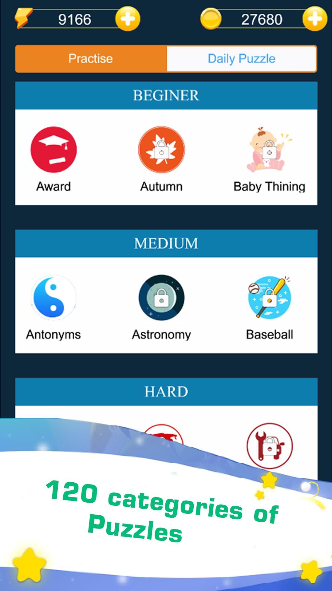 -More than 3000 levels with various category in the life.such as kid and teen, planet earth, under the sea,inventions...