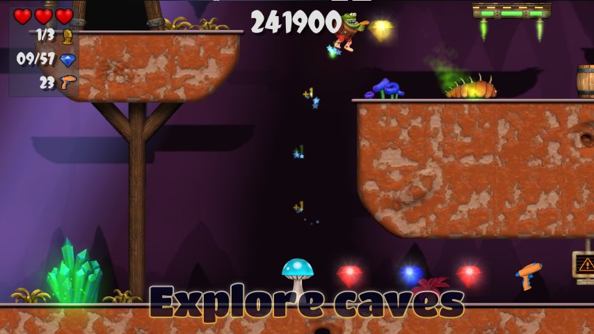 Welcome to Crystal Hunt! An exciting action platformer game where you play as a cute little alien, Dex. Dex is set out on a dangerous mission to collect precious crystals, diamonds and other interesting collectables. But do not expect to take them easily. The mines these crystals are found in are inhabited by numerous monsters and deadly traps. Nothing you can't handle though, as your blaster will take care of anything standing in your way.