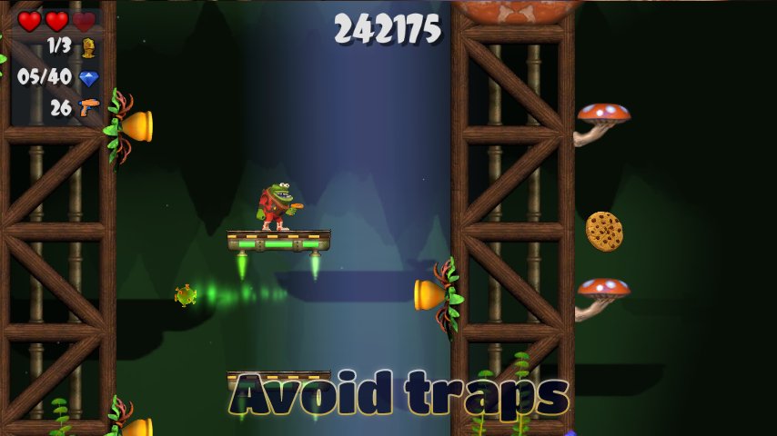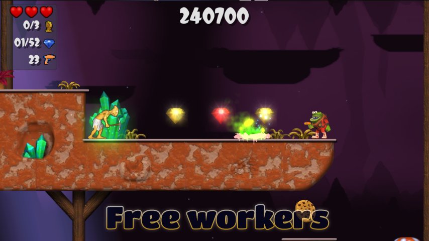 Find crystals & diamonds, avoid traps and fight monsters in this platformer game