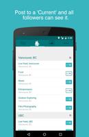 Don't worry about getting friends or followers, you only have to follow the "Current" of the local topics you care about to be in the know. All the Currents you follow whether it's your city, school or interests show up in one feed so everything you care about locally is in one place.