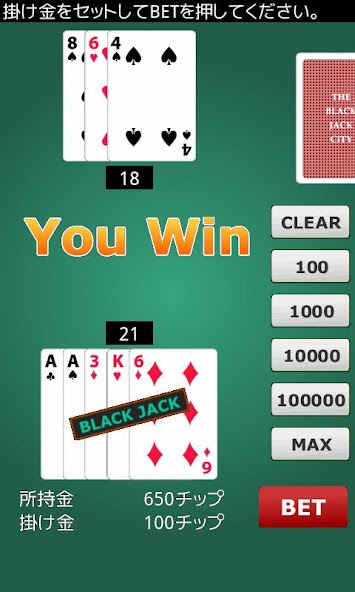 Die Anwendung eines vertrauten Spiels Blackjack im Casino.