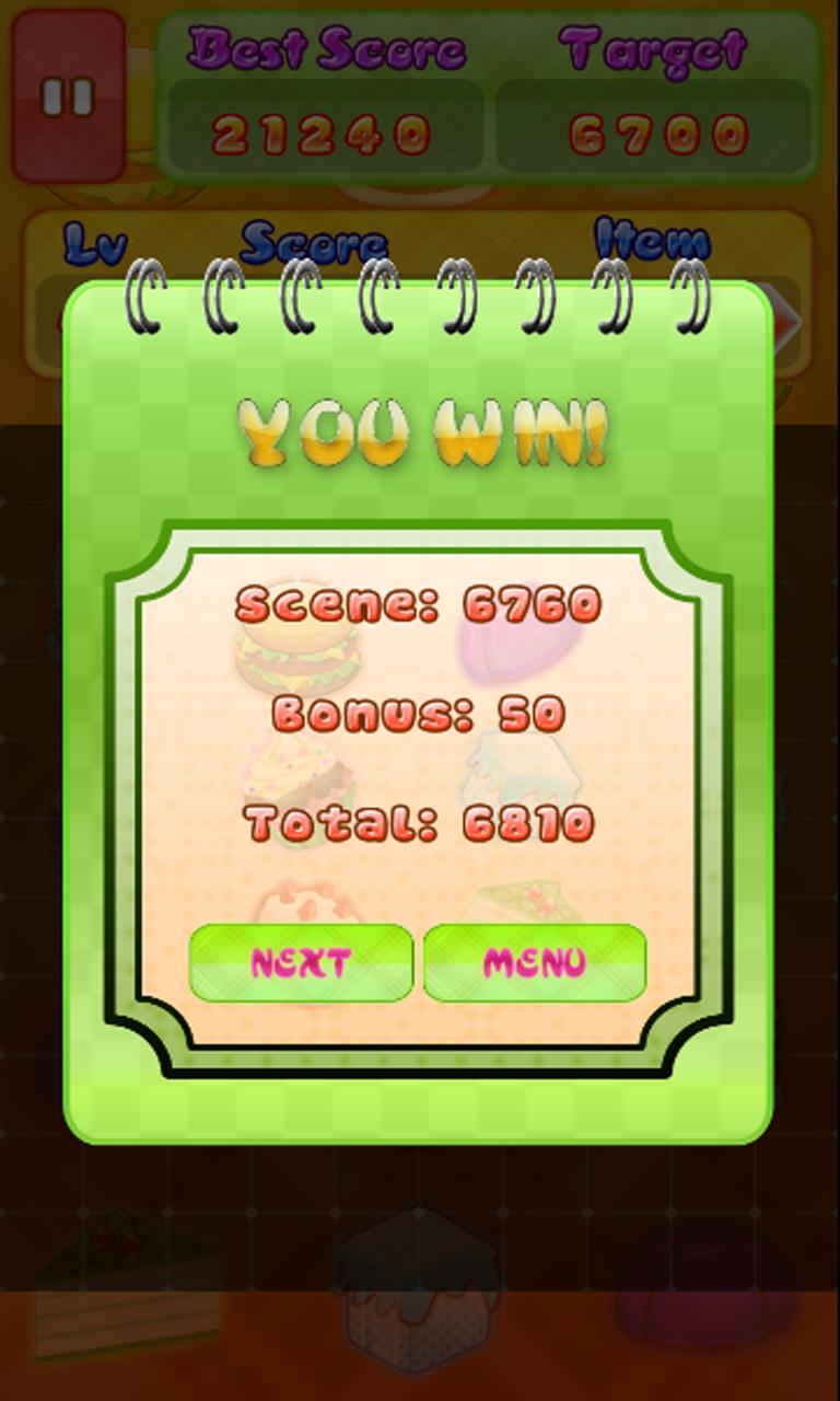 + Versuchen Sie, alle Kuchen zu löschen, um viel Bonus zu erhalten.