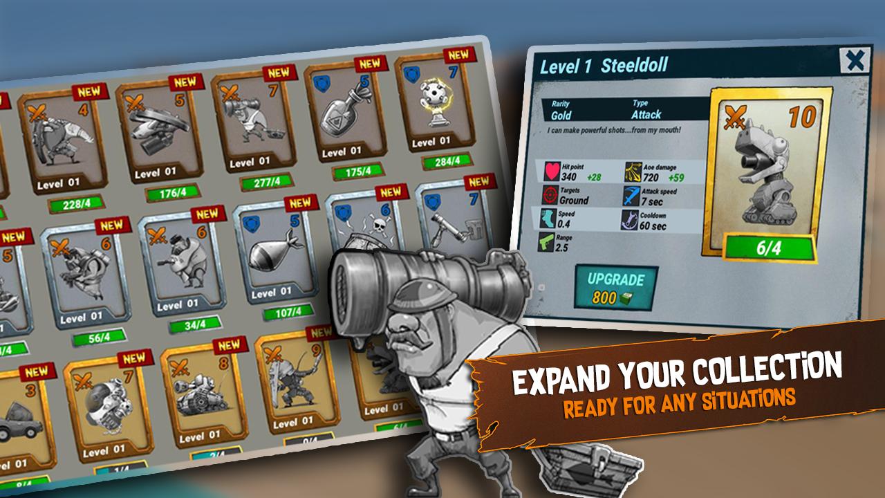Wählen Sie Ihre Helden mit Bedacht in Truppen, bevor Sie in den Kampf eintreten: Biggunner, um aus der Ferne zu töten, eine fliegende Drohne, um den Himmel zu regieren? Oder Yoloshield, um die Verteidigung zu durchbohren? Ihre Entscheidung wird einen großen Unterschied zwischen Sieg und Niederlage machen!