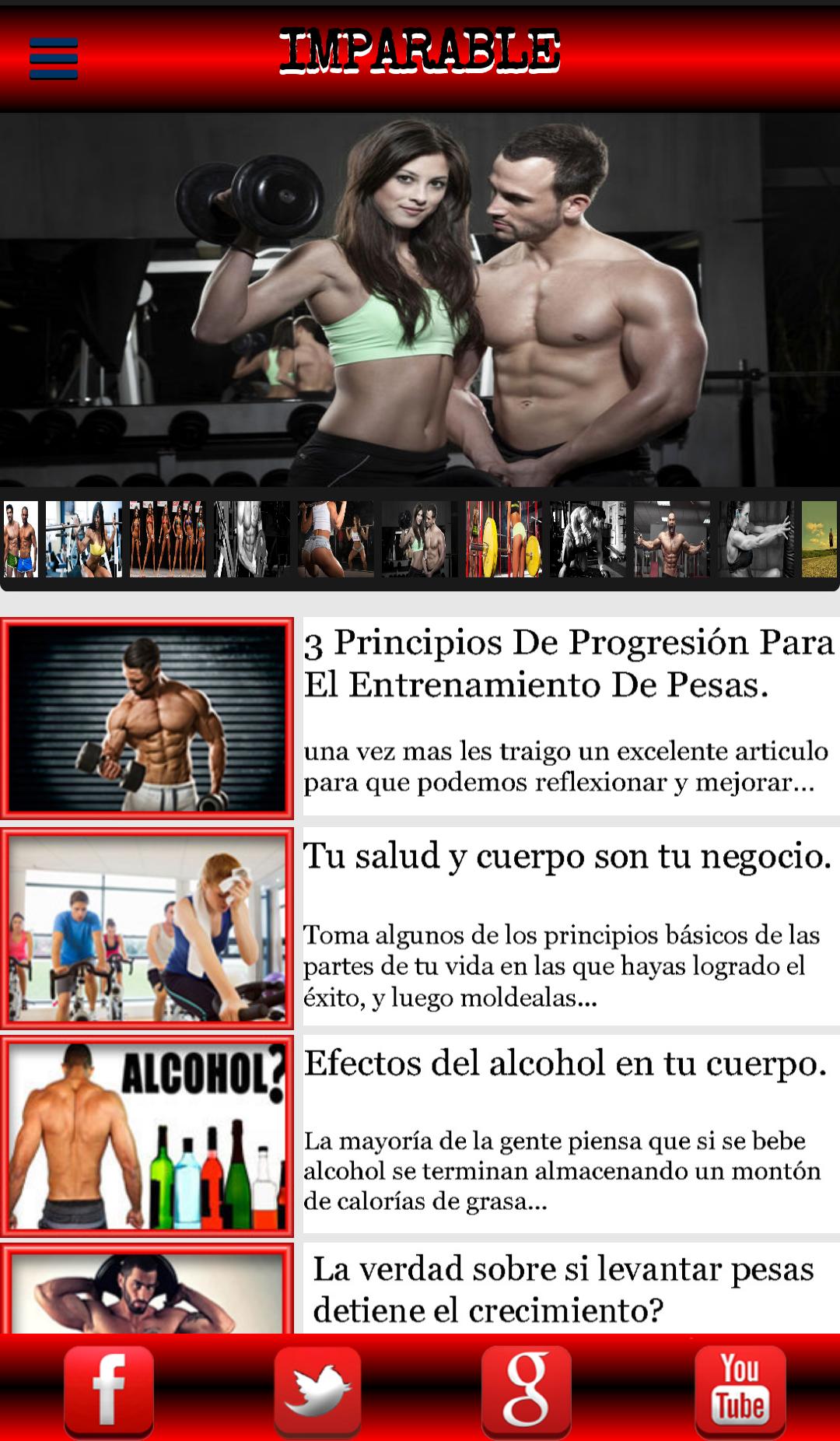 Anwendung, die alles, was mit Übungsroutinen aller Körpernmuskeln zusammenhängt, zusätzlich zu Diäten pro Tag, Ort der Hauptpräparate und Fitnessstors in der Stadt Ibague, auch Freizeitbilder zur Ausführung der Übungen und Anwendungen, die Ihnen helfen, Ihren Gewicht und Ihren Kalorienkonsum auszuführen.