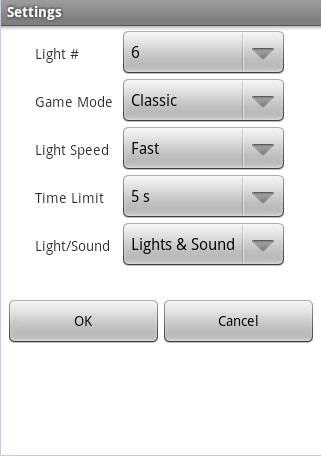 Mit dem "normalen Spiel" -Modus können Kinder und Erwachsene ihre Erinnerungen in 3 Schwierigkeitsgraden (4, 6 und 8 Lichter) trainieren.