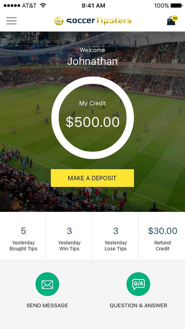 Verfolgen Sie die leistungsstärksten Profi-Fußballtipper und erhalten Sie unterwegs die neuesten kostenlosen Fußballtipps mit der Soccer Tipsters Marketplace Mobile App.