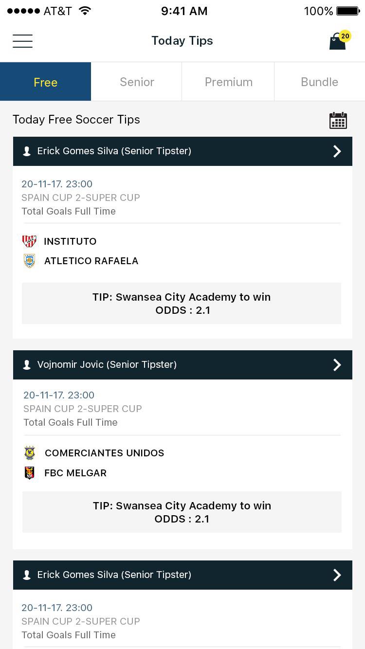 - SEHEN Sie sich täglich kostenlose Fußballtipps an, die von professionellen Tippgebern eingereicht werden