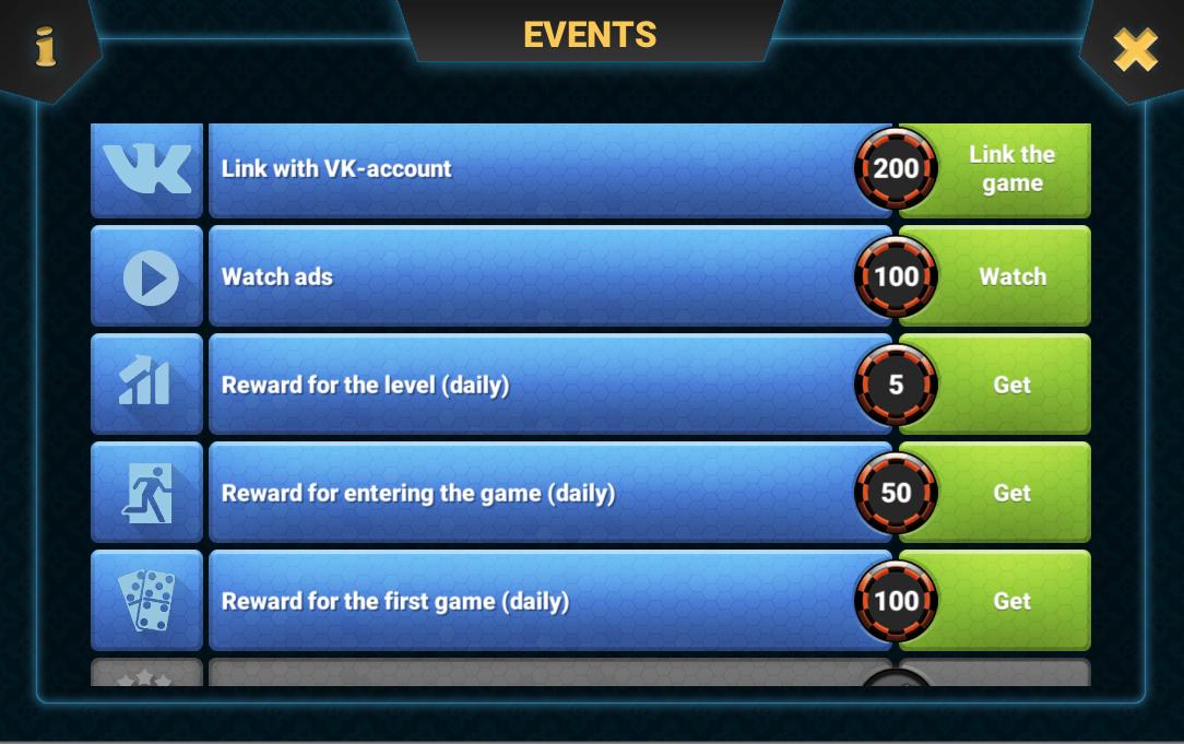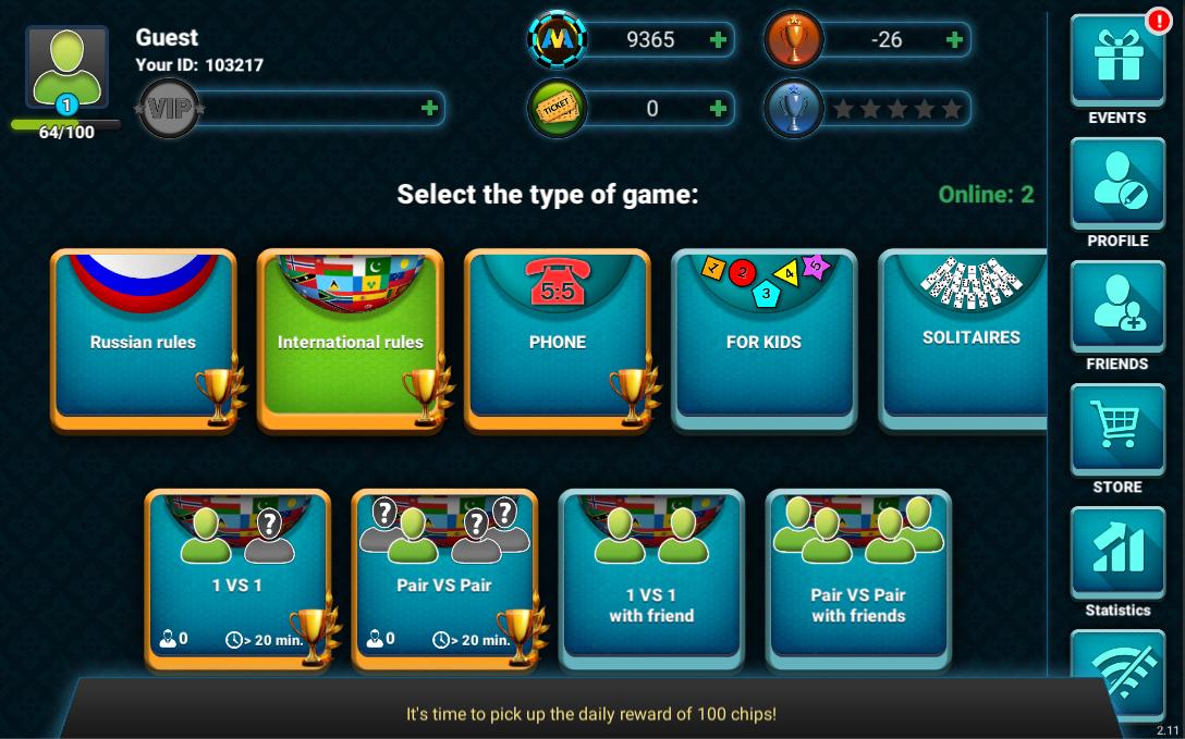 Due to a variety of types and subtypes of dominoes, it is possible to introduce their own rules (in progress).