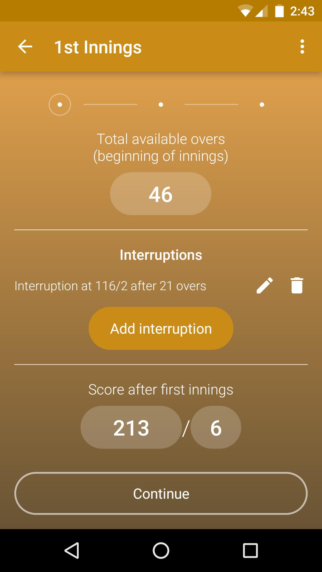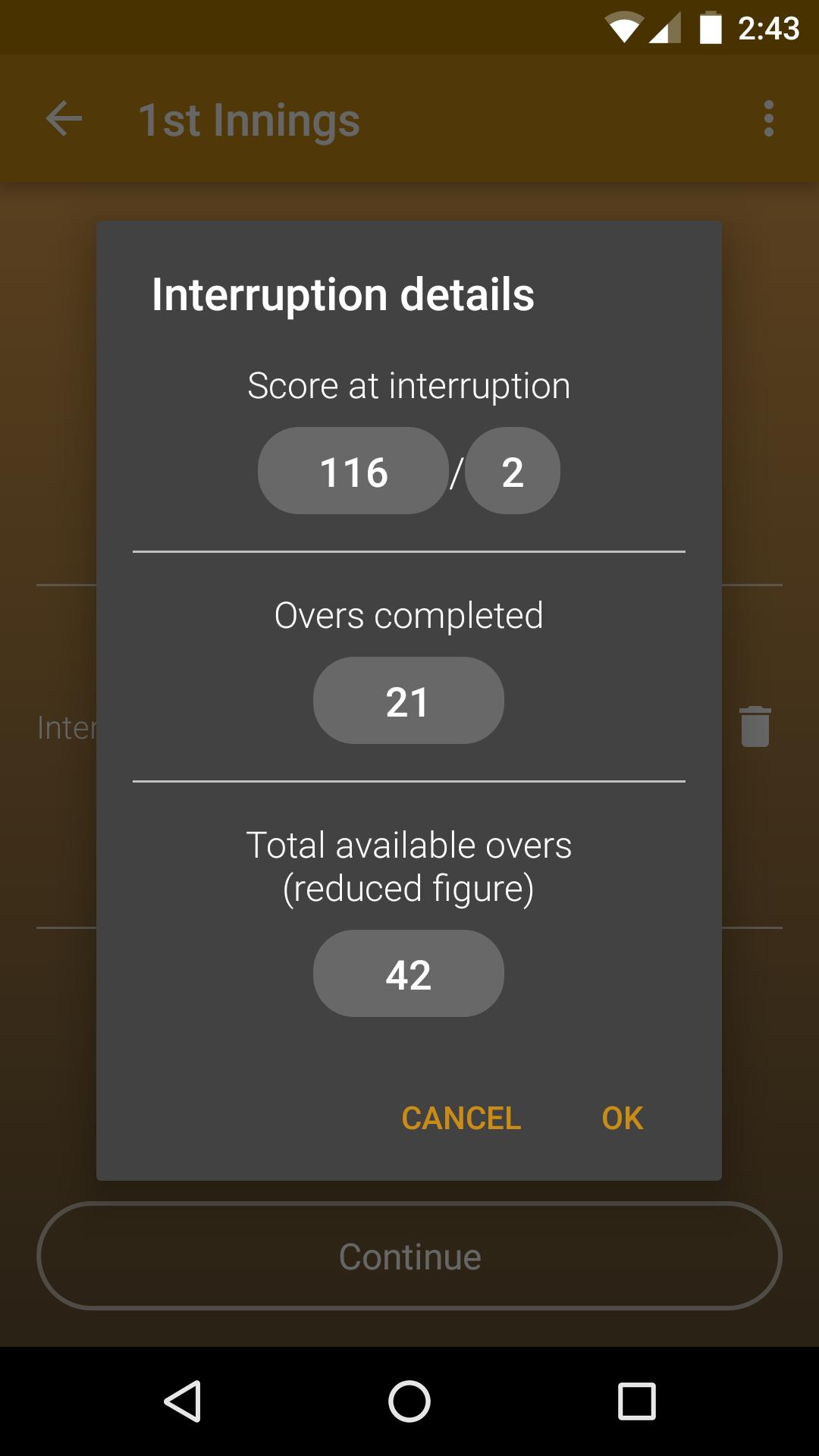 - set the total number of overs available at the beginning of each innings to account for reduced overs before the match begins, as well as reduced overs between innings