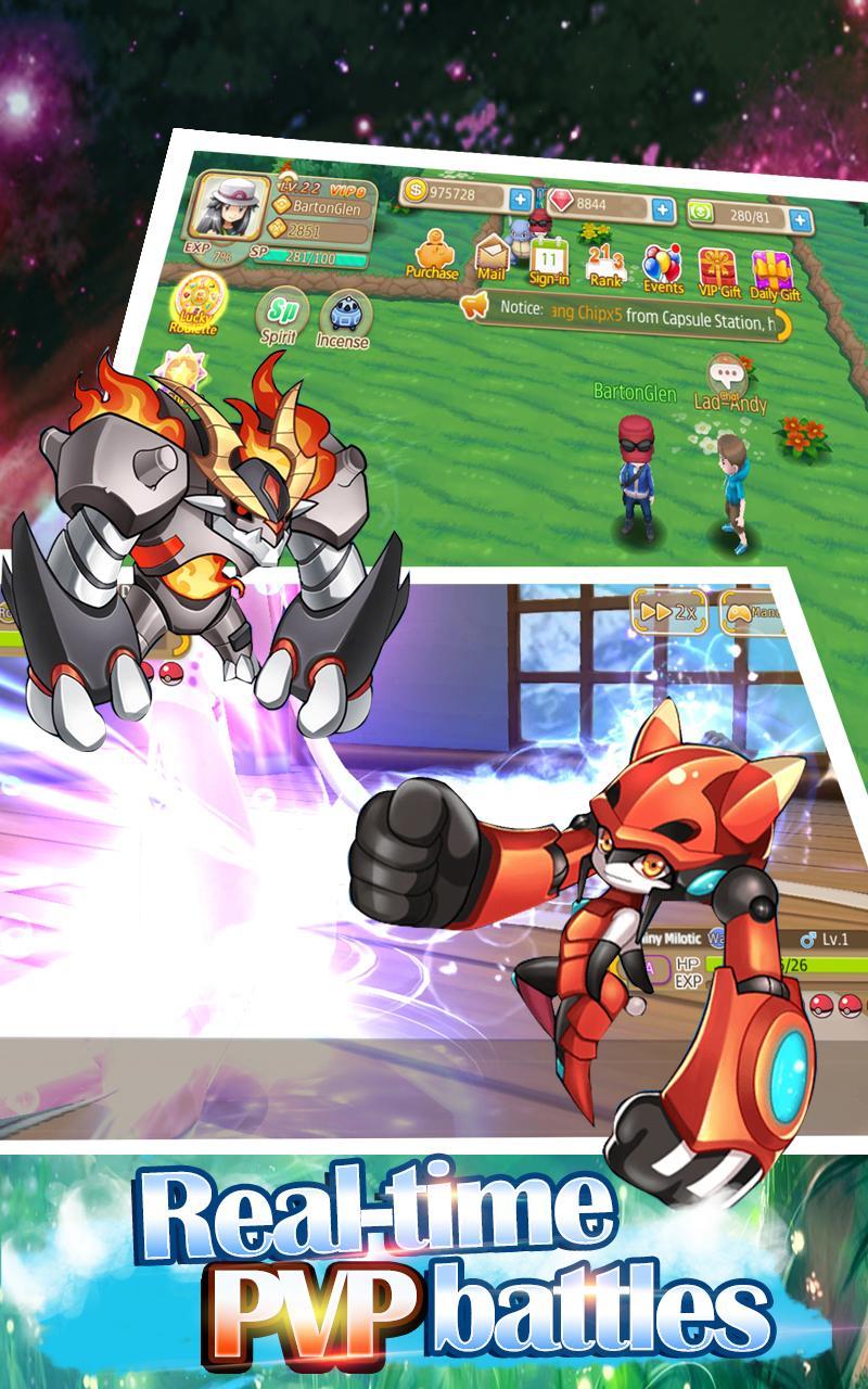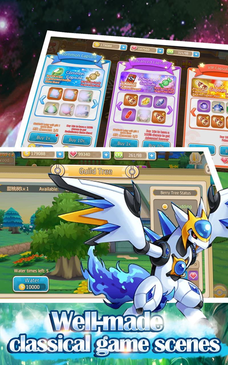 Become a trainer of monster to clear the levels of journey and catch the monsters from where you are unexpected. But be careful! Your enemy is strong, not only the wild monsters but also other players. It's not that easy to defeat and catch all the monsters while you don't have the strong team of monsters! The breeding of monster will be the best way while facing the opponents.