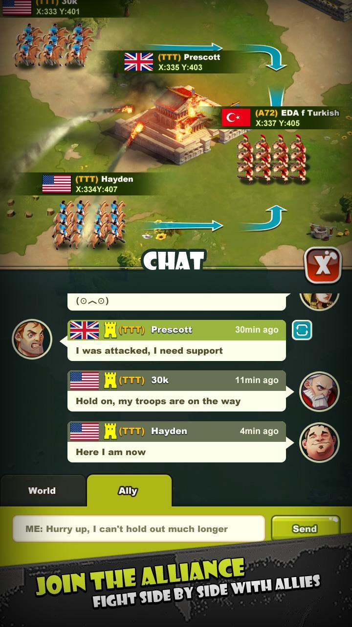 Your opponents and allies come from all over the world. You can unite with global allies to defeat all the opponents who impede your development, to lead your kingdom on the way of the world's highest honor.