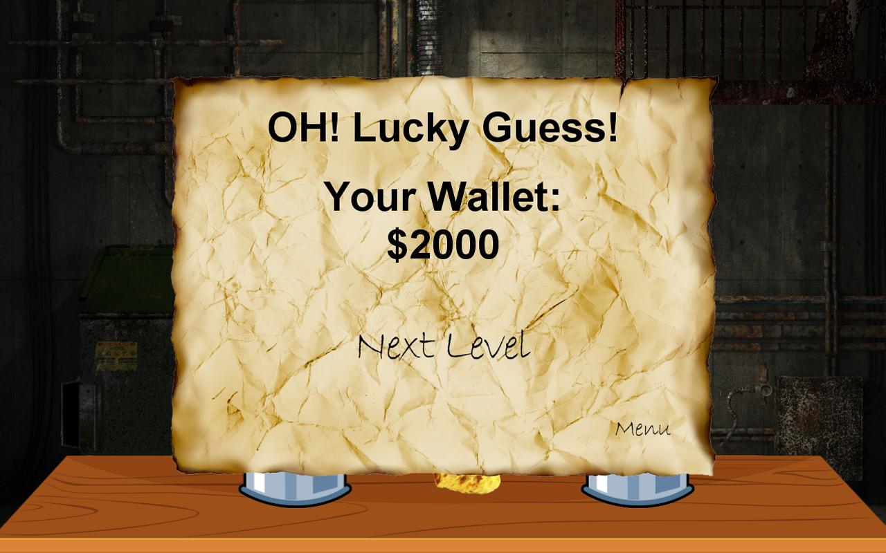Disfruta de una nueva versión del truco de magia de la pelota y la copa. La pepita de oro se coloca debajo de una de las latas, luego comienza el cruce. Mantén un ojo abalorado en las latas y coloque esas apuestas. No te quites el ojo de la pantalla por un momento. Cada nivel se vuelve progresivamente más duro con latas de movimiento más rápidas y más latas agregadas en ciertos niveles. El juego termina cuando te has quedado sin dinero adivinando incorrectamente muchas veces.