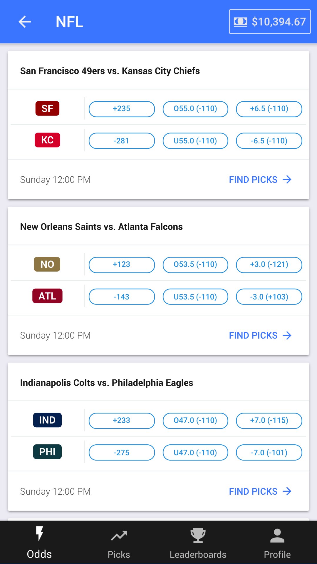Desbloquea selecciones deportivas de los mejores handicaps del mundo GRATIS. Nuestro algoritmo patentado de puntuación de calidad clasificará automáticamente las mejores selecciones disponibles para usted, ¡y usted podrá decidir cuál quiere usar esta noche!
