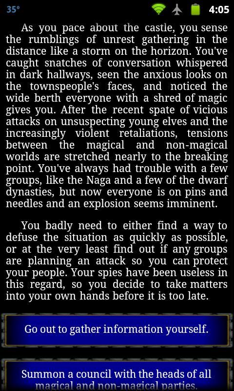 Un juego de aventura y exploración de texto donde tomas las decisiones, elige tu camino es un divertido lector de historias casuales donde eliges lo que sucede después. ¿Quieres que tu personaje vaya a explorar el viejo y espeluznante castillo, o se esconda en el bosque? ¡Nadie más que tú decidas cómo resultará la historia!