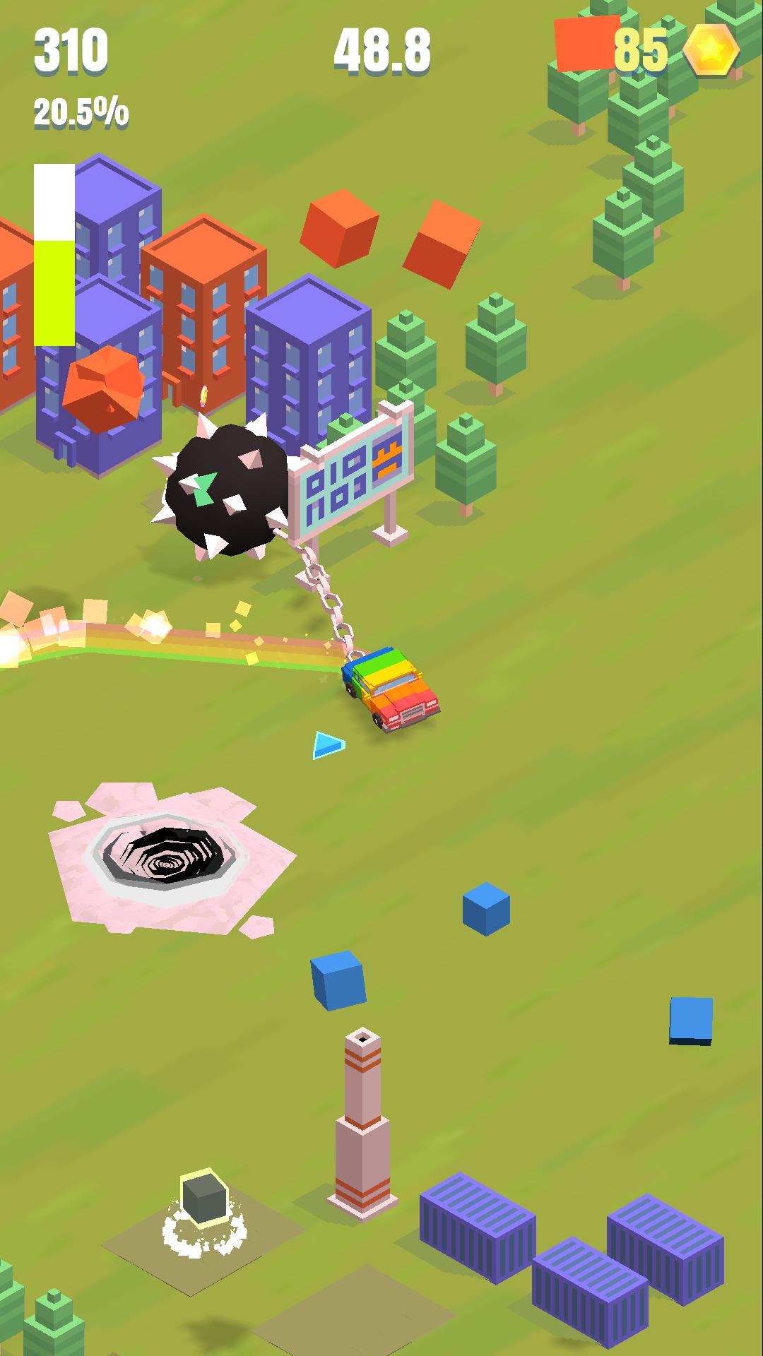 ¡Haz todo con un Flrail gigante unido a tu vehículo! Flail Rider es un juego colorido, de ritmo rápido y de arriba hacia abajo. Conduzca, deriva, destruya y deforma de un área a otra. ¡Cuanto más se destruya el medio ambiente con su pelota con púas, más alto es el puntaje!