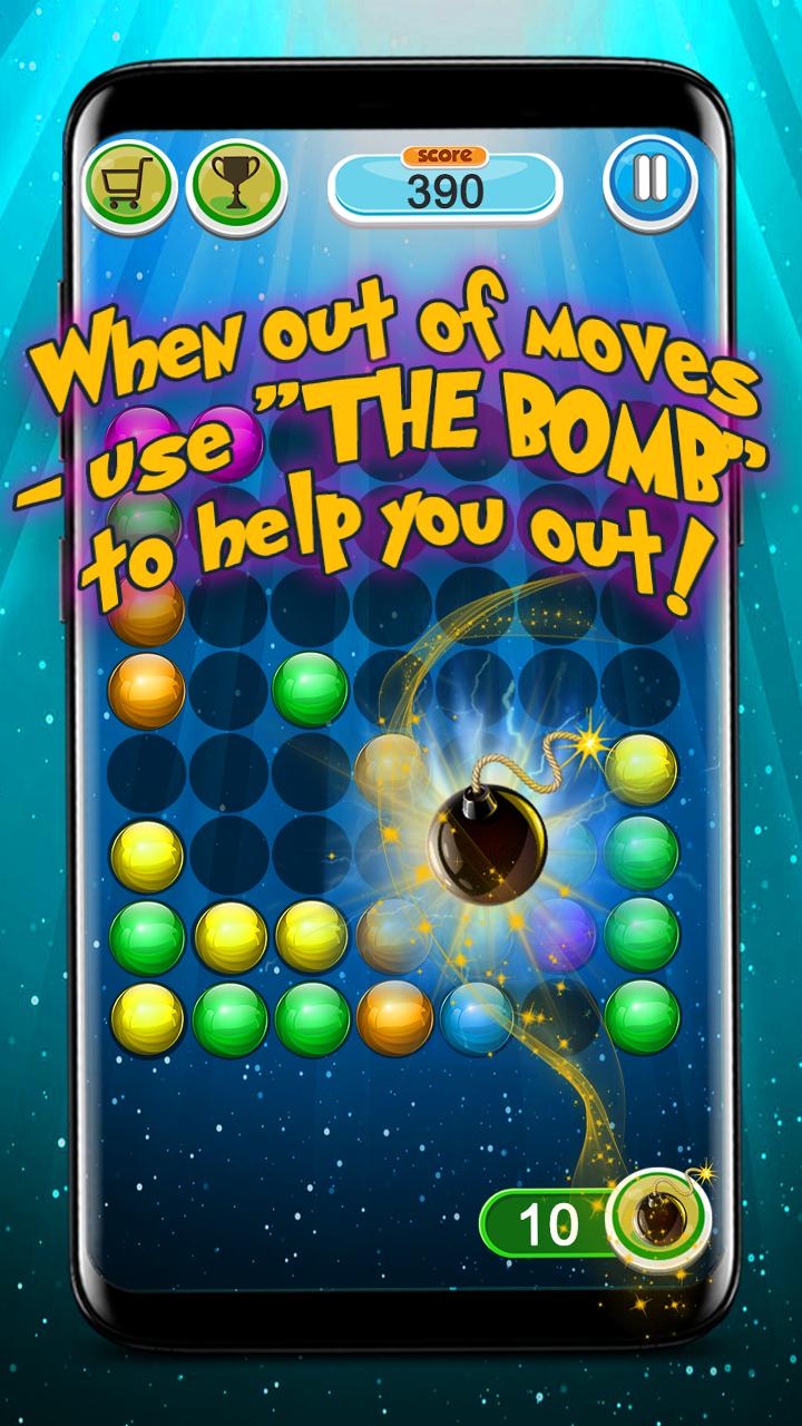 ☻ Si te quedas atascado, ¡usa la bomba para expulsar todas las bolas y despejar el tablero!
