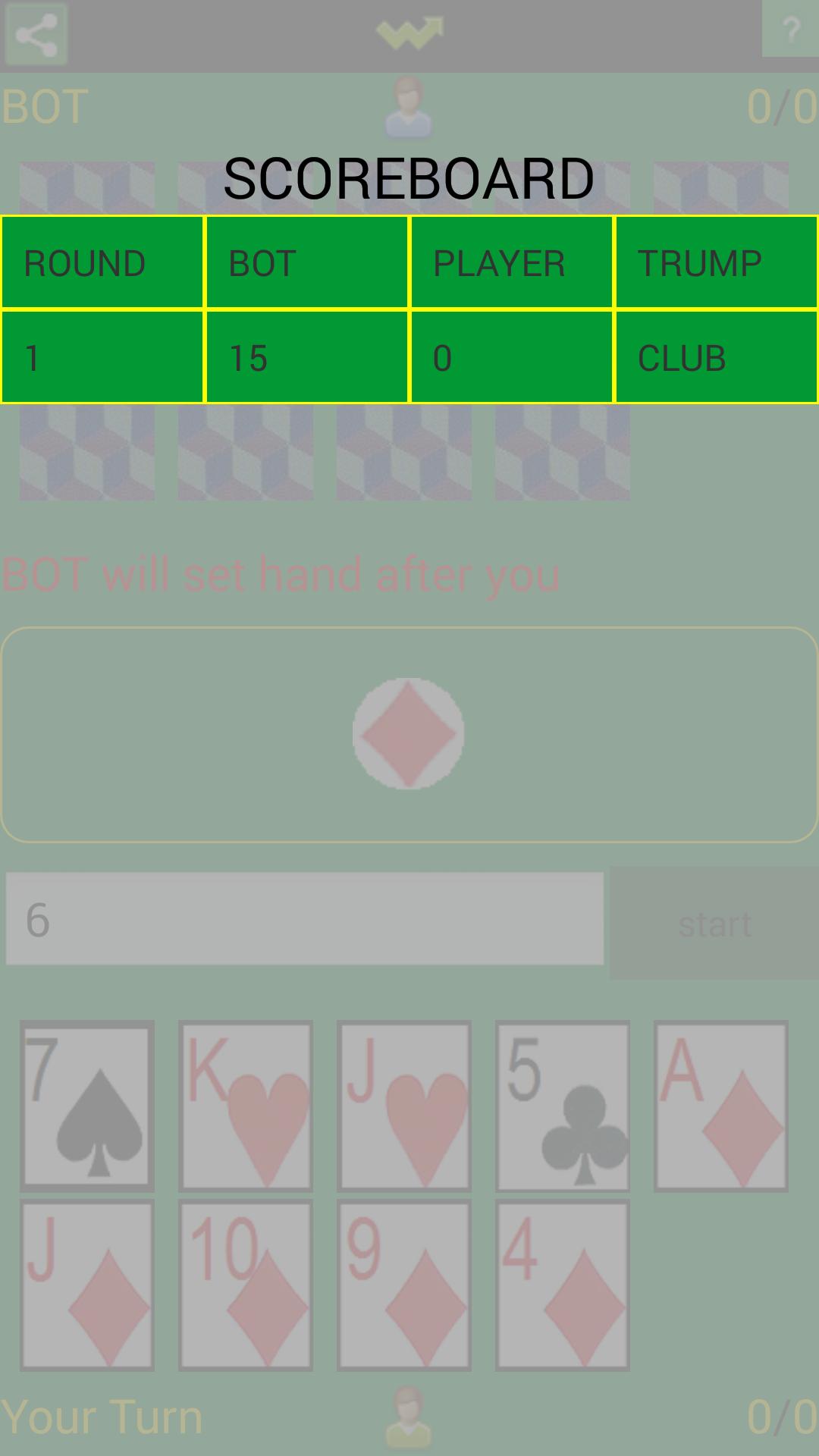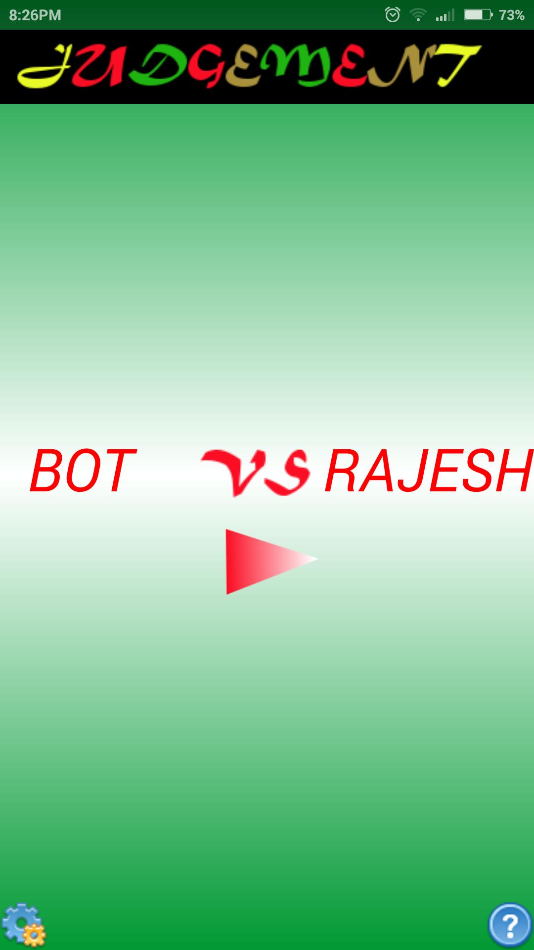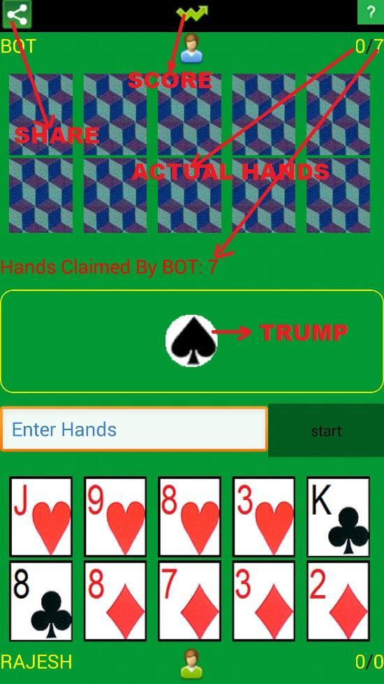 Judgement /Kachufool /National es un juego de cartas. Que jugó en rondas, y cada ronda tenía un número diferente de cartas por mano y un traje de Trump diferente. En este juego debes juzgar el número exacto de la mano en cada ronda. Usted gana solo si la mano reclamada es exactamente igual a su mano real en cada ronda.