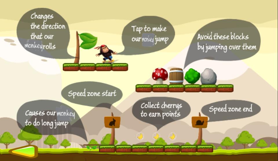 ♦. Toque la pantalla para hacer que Monkey Hero se ejecute.