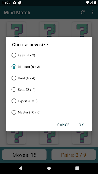 ★ Elija entre varios tamaños y dificultades de tablero: fácil (4 x 2), mediano (6 x 3) y duro (6 x 4), jefe (8 x 4) y otros 2 niveles adicionales difíciles.