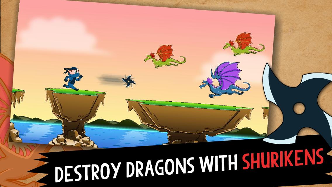 Tenga cuidado donde corres. También puedes intentar saltar para evitar dragones o dispararles usando estrellas ninja o shurikens.