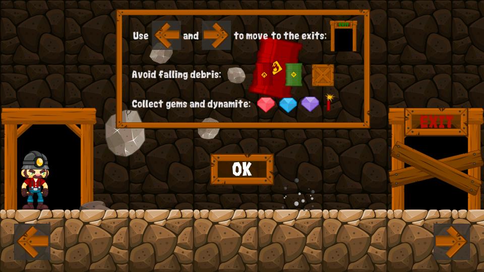 Juega como Rocky, un minero atrapado en una cueva y evite caer escombros mientras llega a la salida. Tome la dinamita para eliminar los escombros y recolectar gemas para desbloquear las salidas. ¡Sobrevive todo el tiempo que pueda para obtener el puntaje superior!