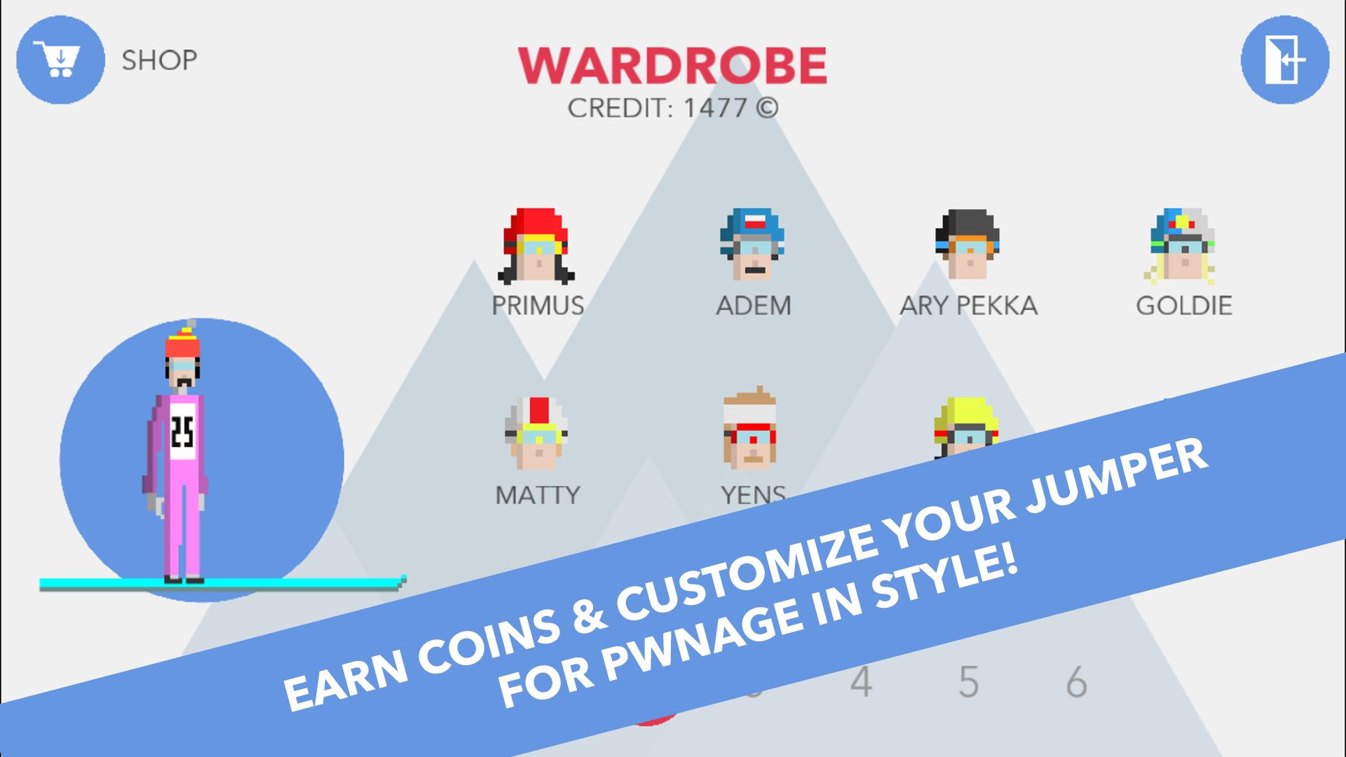 3. Personaliza la apariencia de tu jersey con cabezas de leyendas de esquí, esquís y trajes de salto.