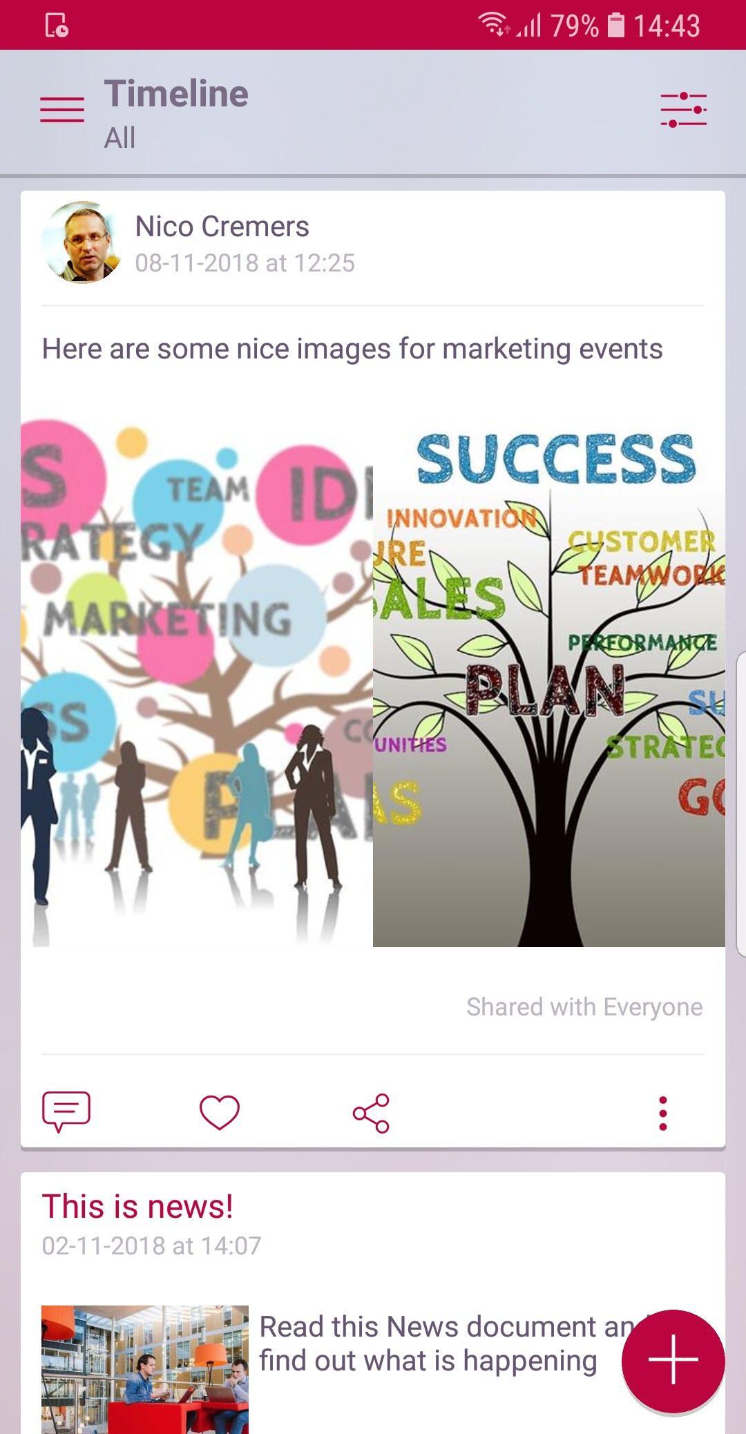 The Timeline shows you what is going on in your company. You can read all about it and share your own updates.