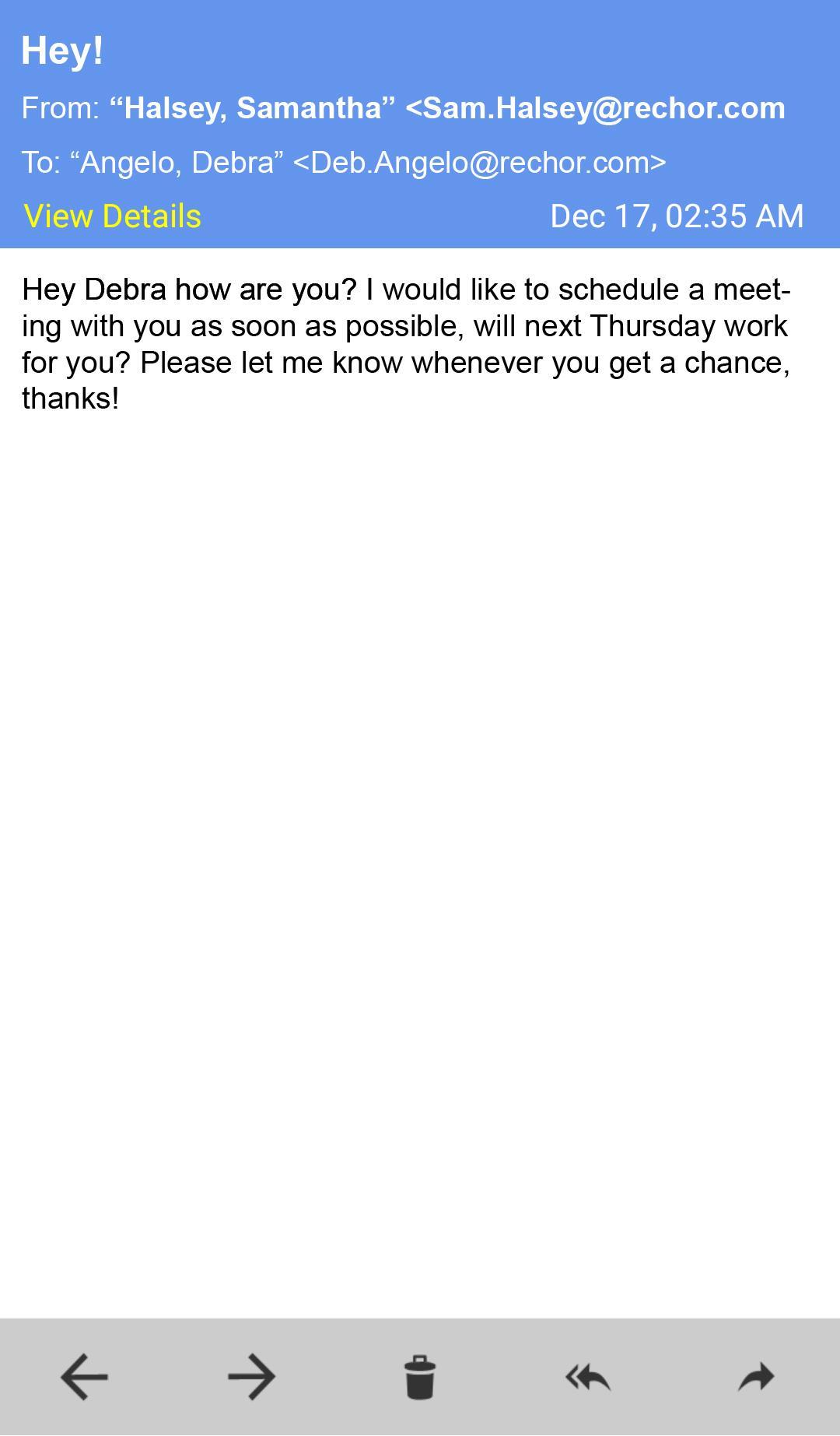 IT administrator can enforce mobile security policies through exchange server console such as Alpha-numeric security PIN length, In-activity timeout, Number of failed attempts, Remote data Wipe, and enabling attachments. All the data files for email, contacts, calendar, and tasks are encrypted and they are part of the application’s database without having an option to copy to external drives. The application handles all the SSL certificates including in-house certificates.